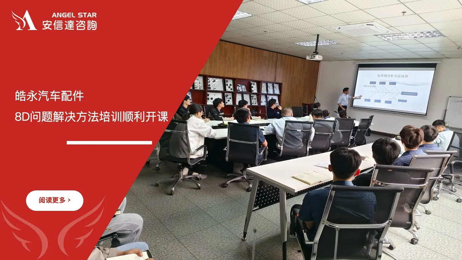 IATF16949认证咨询机构(安信达咨询)为皓永汽车配件开展8D问题解决方法专项培训,提升企业问题分析、整改与预防能力,强化质量改进水平。
